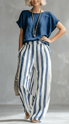 Bequemes lockeres gestreiftes Baumwolle-Leinen-Zweiteiliges Set