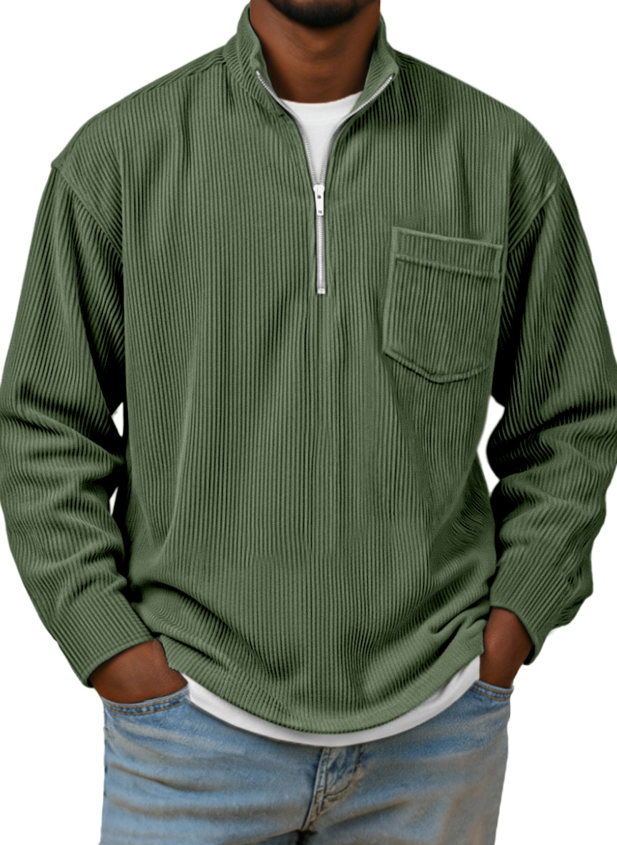 Herren Einfaches Basic Corduroy Viertel-Reißverschluss Stehkragen Langarm Polohemd