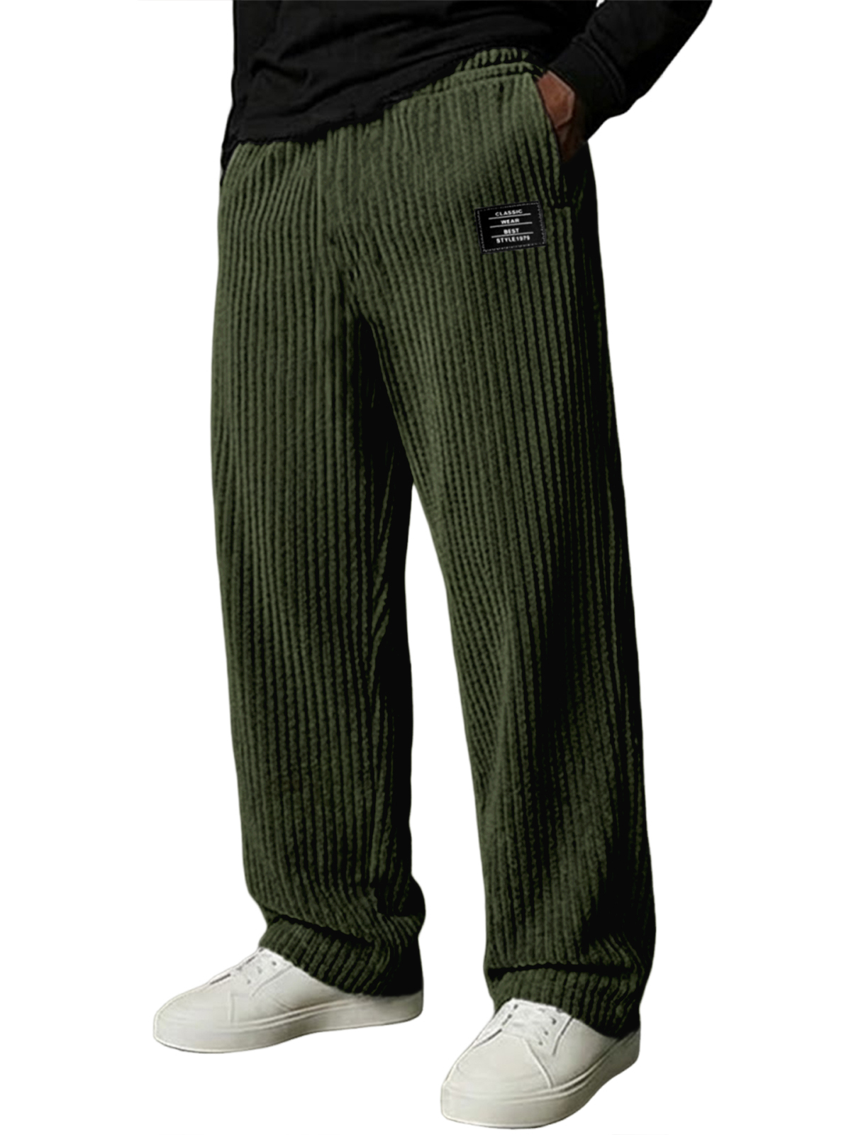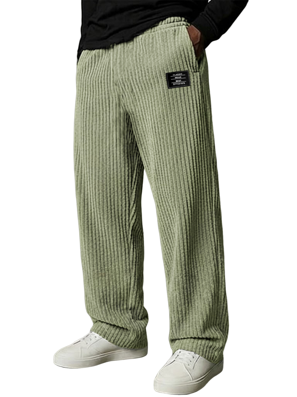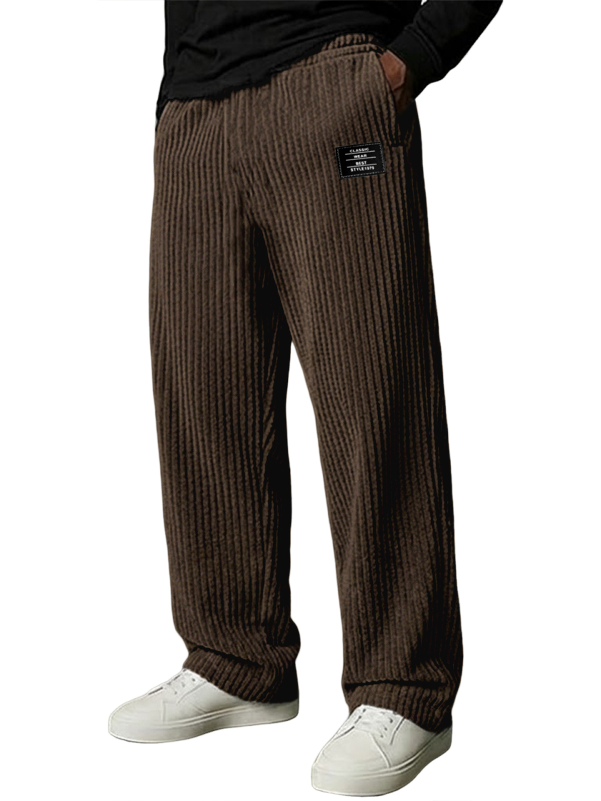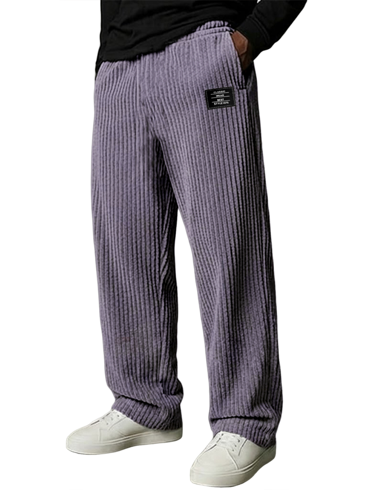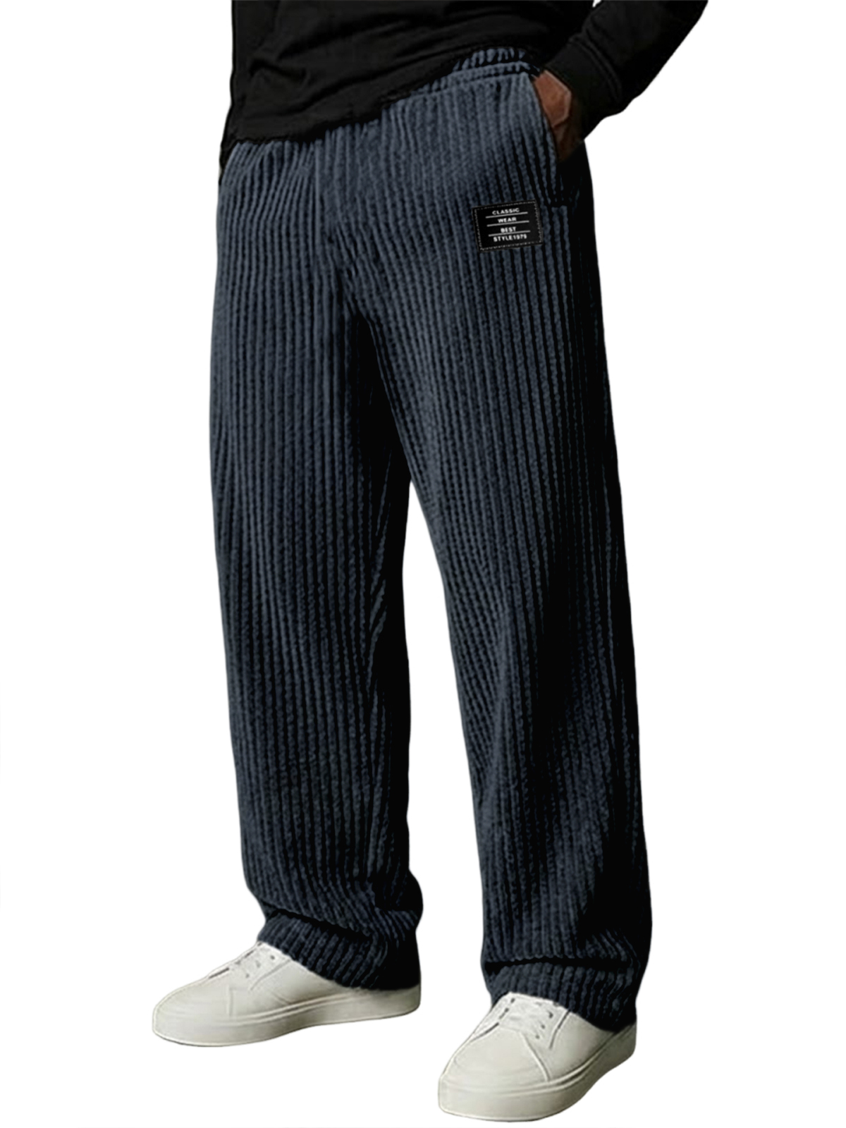 Herren Stilvolle Vertikale Gestreifte Cordhosen mit Besticktem Etikett